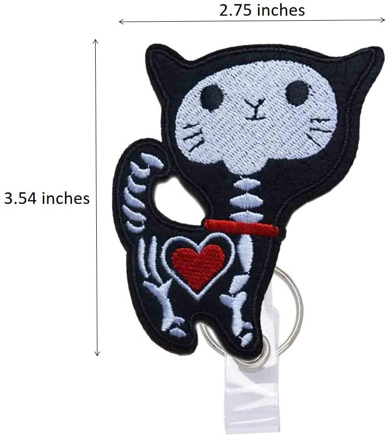 X-ray Tech Skeleton Cat Badge Reels Retractable, with Alligator Clip and Key Ring, 24 inches Thick Pull Cord
