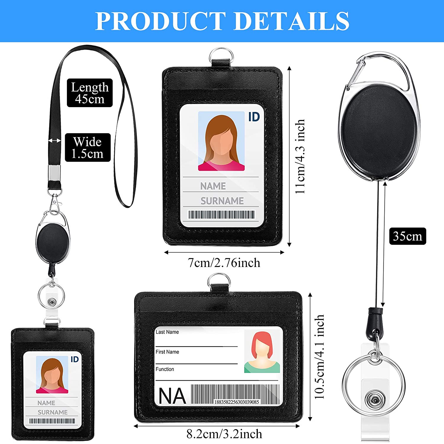 Retractable Leather Badge Holder Vertical and Horizontal ID Card Holder Retractable Badge Reel with Slot Detachable Lanyard Name